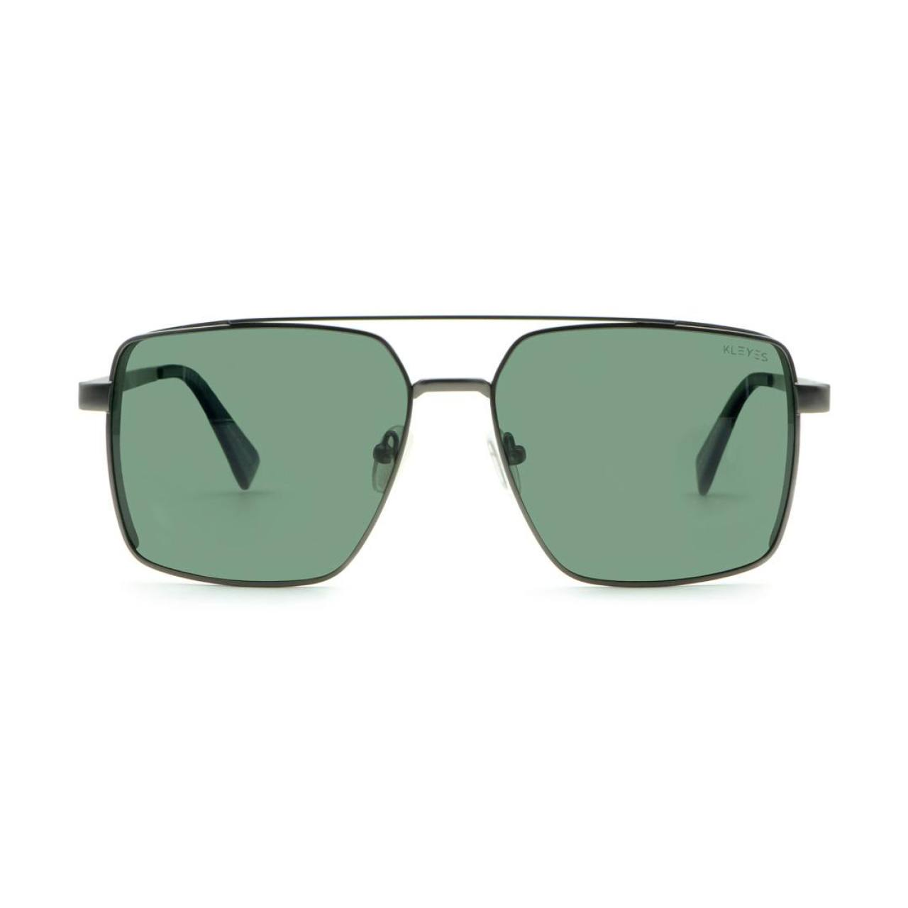Aviator sunglasses for him with a classic, bold style, featuring a gunmetal frame and green lenses. The elegant packaging includes a pouch and cloth, so that you can always carry them with you.